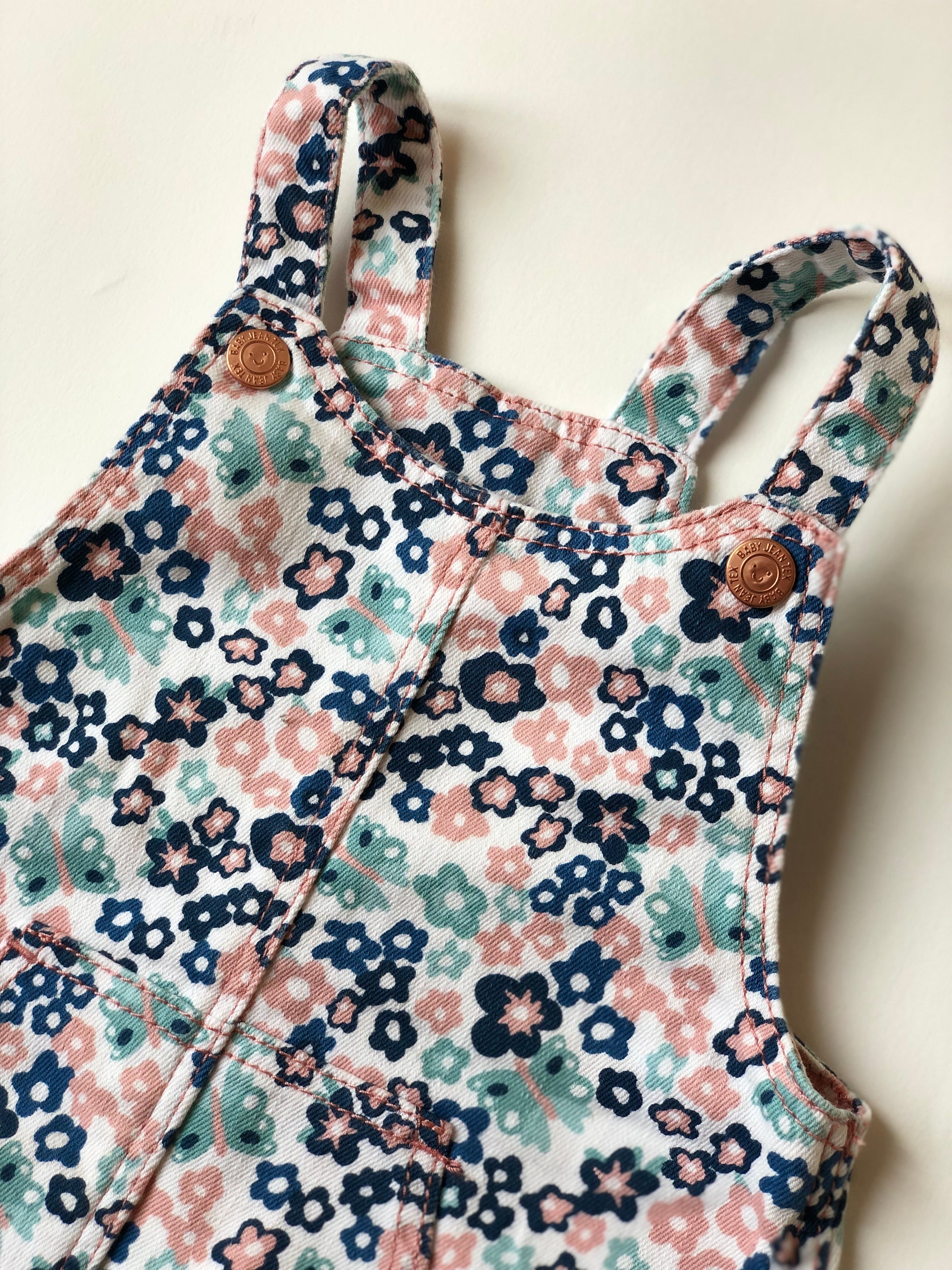 Robe salopette en jeans à fleurs Tex 6 mois